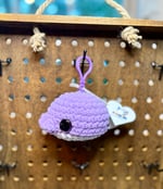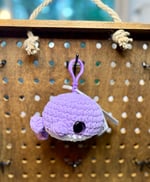Meet Cosmo, the purple plush cutie from our Clip-On Buddies collection! About 3" long and crocheted by hand, he’s made with plush lavender yarn and glittering purple safety eyes that shimmer like a twilight sea.