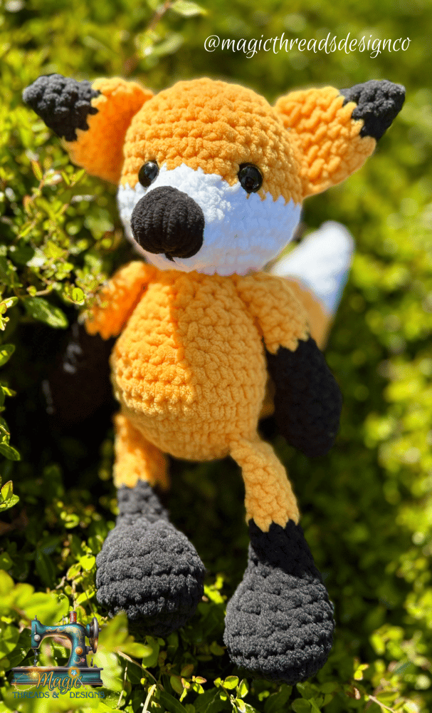 Say hello to Ember — a soft and snuggly crochet fox made with plush yarn in warm orange, crisp white, and bold black accents. Her sweet face, floppy limbs, and cozy texture make her the perfect companion for cuddles, playtime, or woodland adventures.