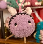 A whimsical twist in our Clip-On Buddies collection! This miniature crocheted bee features soft lavender plush with bold black stripes and tiny white wings. She’s perfectly palm-sized and comes with a sturdy plastic clip so she can tag along wherever you go.