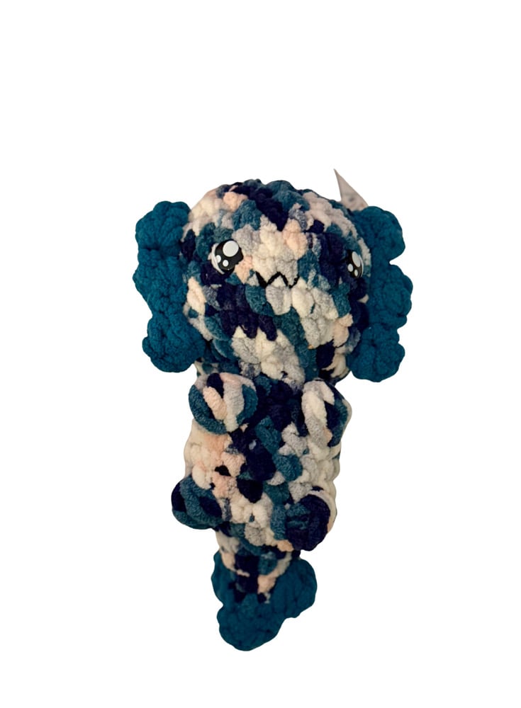 Meet Nerissa — a handmade crochet axolotl plush with a body of soft, sea-toned yarn and delicate frills that make her extra lovable. Her cuddly shape and cheerful charm make her the perfect buddy for playtime, cozy corners, or bedtime snuggles. Nerissa is sure to bring smiles and comfort wherever she goes!